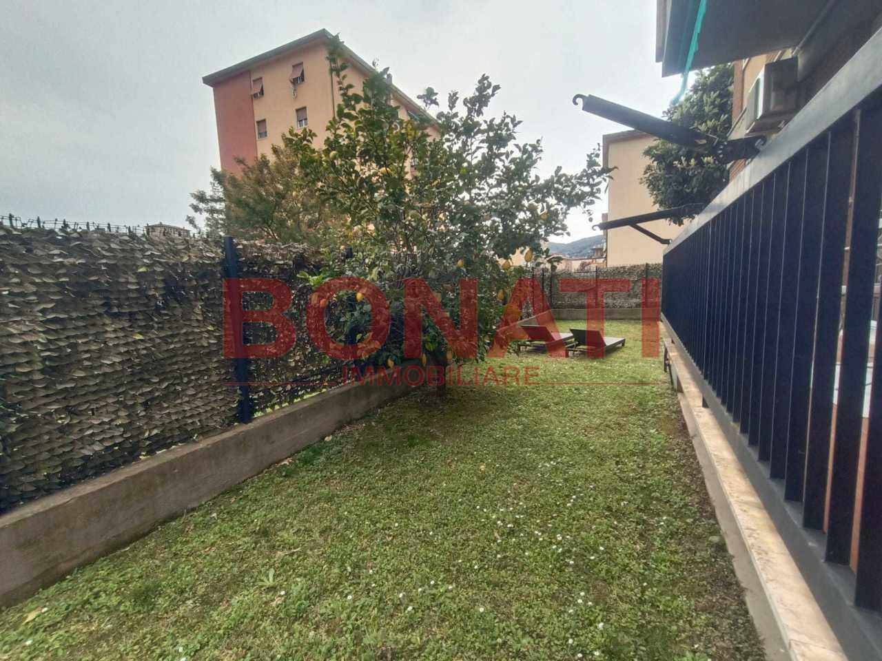 Rebocco, nella parte alta di via Monfalcone, disponiamo di ampio 5 vani con giardino così suddiviso: ingresso in disimpegno che porta a soggiorno doppio con porta finestra che da su lungo balcone ed il giardino, cucina abitabile con porta finestra, camera matrimoniale anch´essa con porta finestra che si affaccia su ulteriore lunga balconata ed il giardino, altra camera e bagno finestrato. L´appartamento è abitabile da subito in quanto in perfetto ordine nelle opere interne ( impianto idraulico, elettrico a norma, infissi in pvc con doppi vetri, serramenti esterni nuovi in alluminio, impianto di condizionamento ). La proprietà comprende un giardino angolare di 150 mq ed una cantina di oltre 20 mq. Posto auto assegnato. L´immobile si trova in un complesso al quale si accede tramite sbarra elettrica con telecomando. Spese di condomino contenute (45 € mese). N.B. è presente anche un secondo ingresso indipendente dal giardino.