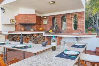 Una villa esclusiva, immersa nel verde, con vista mare, piscina, ampi spazi interni ed esterni, dependance, riserva idrica, a pochi minuti dalle spiagge e dal porticciolo.