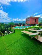 La Chiappa - in zona collinare e defilata dal traffico si propone semi indipendente di recente costruzione disposta su tre livelli così suddivisa: ingresso direttamente nella zona giorno doppia, cucina abitabile, grande bagno e ripostiglio; dalla cucina e dal soggiorno si accede alla comoda terrazza abitabile. Dalle scale interne si accede al piano secondo dove si trovano tre camere matrimoniali e due bagni mentre al piano terra, collegato da scala interna direttamente dal soggiorno si trova una grande taverna di mq. 62 con bagno e lavanderia, utilizzabile a piacimento e un garage di mq. 38. Completa la proprietà una piscina di utilizzo comune con il solo vicino. La villa, edificata nel 2014 è dotata di cappotto termico, infissi in pvc con tripli vetri, aria condizionata e si trova in una via privata con accesso da cancello videosorvegliato.