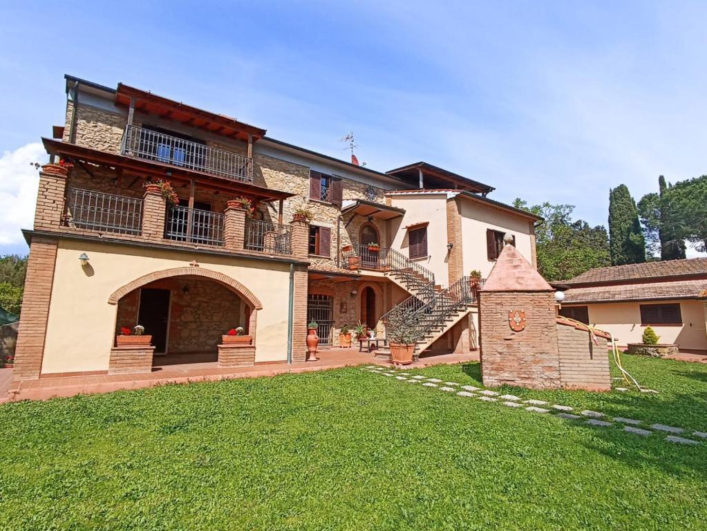 Comune di Guardistallo (PI) - In posizione dominante nell´incantevole verde delle colline Toscane a 12 km circa dalla spiaggia di Cecina Mare, è ubicato questo questo bellissimo casolare tipicamente TOSCANO con due accessi carrabili indipendenti, composto da 3 fabbricati con una metratura complessiva di mq.450 con 8 appartamenti totali ed è circondato da grande parco oltre terreno agricolo.