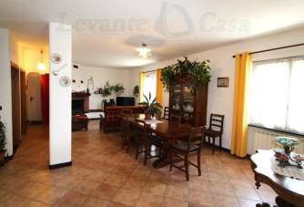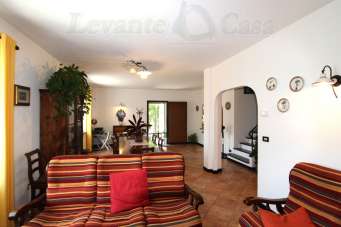 Avegno - Zona Salto - In posizione molto soleggiata e luminosa proponiamo in vendita casa TOTALMENTE INDIPENDENTE con annessi BOX e GIARDINO - La casa è disposta su 3 piani e misura oltre 200 mq . Al piano primo, quello di ingresso, troviamo la cucina in muratura a vista sul grande salone con caminetto, il bagno con doccia e una comoda dispensa. Al secondo piano troviamo la zona notte con le 3 camere da letto ( 2 matrimoniali e 1 doppia) il bagno con vasca, il ripostiglio e la balconata. Al piano terra troviamo il grande box di oltre 60 mq e la cantina. I piani sono collegati tra loro da comode scale interne. L´immobile si presenta in buono stato con pavimenti in cotto, scala in ardesia, doppi vetri e porta blindata. Completano la proprietà due terrazze vivibili attrezzate con area barbecue , terreno a fasce con ulivi e diversi alberi da frutto, ampia area di parcheggio privato antistante l´abitazione.