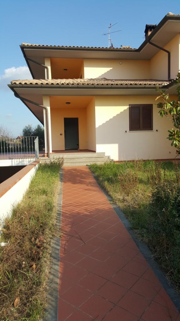 Villa bifamiliare su 3 livelli con portico e giardino su 3 lati, piano sottostante , taverna grande , bagno e ampi spazi.