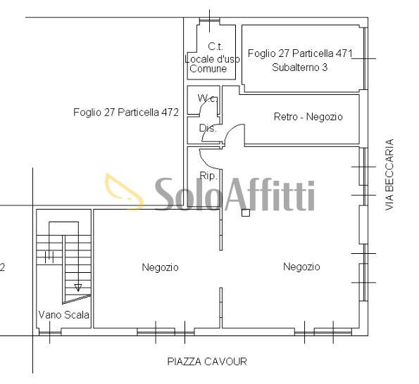 3 vetrine Piazza Cavour trilocale 75mq