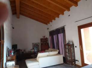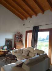 Al piano terra trova spazio un ampio soggiorno con travature a vista, cucina separata di olre 20 mq., 2 ampie camere letto, 2 bagni, lavanderia, magazzino (da adibire a garage)