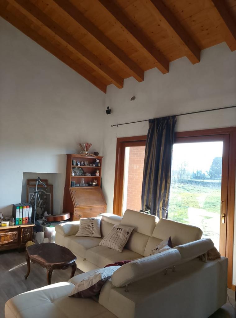 ottima singola con ampi spazi interni inserita in un lotto di 3300 mq. Situata in zona tranquilla ed immersa nel verde, su di un appezzamento di terra disposto ad angolo, la casa è orientata a sud, con un ampio e spazioso portico ed è suddivisa in due piani: