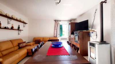 A piano terra ingresso, luminoso soggiorno, cucina abitabile, due camere da letto e servizio. Al primo piano, secondo soggiorno, grande cucina abitabile, camera matrimoniale, servizio e balcone.