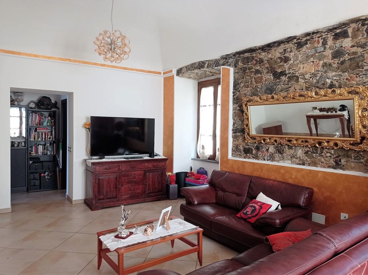 Fosdinovo in centro storico, con affaccio su piazza Cairoli, ampio e luminoso appartamento disposto su due livelli e con doppio ingresso, uno indipendente ed uno dal vano scala condominiale. Ingresso principale dal vano scale condominale al piano primo in salone ampio e molto luminoso con soffitto a volta con altezza 3,50 circa, cucinotto, disimpegno, bagno con vasca e doccia, due camere matrimoniali e studio. Dal disimpegno si accede alla terrazza sui tetti del paese e con magnifica vista mare. Dal disimpegno si accede al piano intermedio composto da salotto e bagno e scendendo ancora si accede alla taverna con altezza 3,50 arredata con ampia cucina, attraverso un corridoio si accede poi alla cantina ed al secondo ingresso dell´abitazione. Immobile ristrutturato nel 2010 ed in ottimo stato di conservazione. Impianto di riscaldamento a pavimento, e pannelli solari per acqua termosanitaria. Impianto di riscaldamento alimento da caldaia tradizionale a gas e stufa caldaia a pellets. Immobile di ampie dimensioni e comodo al parcheggio, con gestione delle spese ben economicizzata, adatta a 2 nuclei familiari o ad attività ricettiva.