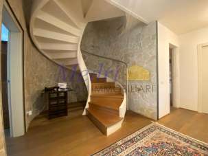 La residenza si sviluppa su tre piani, collegati internamente da una scenografica scala elicoidale realizzata in materiali di pregio, che conferisce carattere e continuità agli ambienti. L´abitazione è accogliente fin dal primo sguardo: il bel portico a piano terra ci introduce in un ampio ingresso da cui si accede a spazi luminosi e ben distribuiti, come la ariosa zona soggiorno con camino di circa 30 mq., la cucina abitabile dal carattere conviviale, il bagno, lo studio e la pratica lavanderia/stireria con doccia. Al piano primo la zona notte ospita tre camere da letto matrimoniali, una cabina armadio, due bagni, due balconi che garantiscono funzionalità e riservatezza. Completa la villa, un piano sottotetto, perfetto come secondo studio, sala hobby o ambiente per ricevere ospiti.
