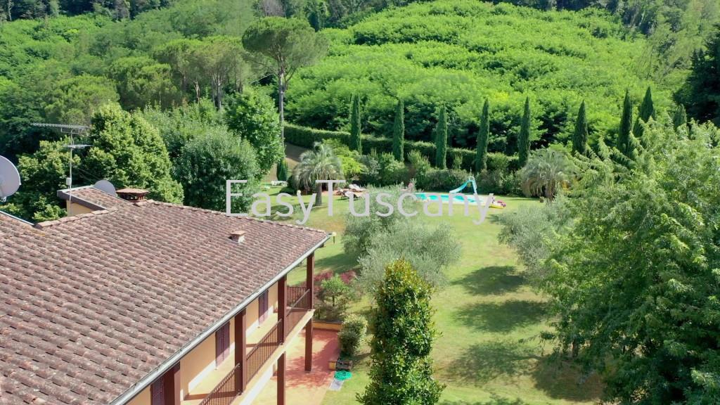 Ponte a Moriano, in contesto collinare con vista unica sulla piana e sulle colline circostanti, a 10 km da Lucca, colonica di 500 mq disposti su due livelli fuori terra e un piano seminterrato. La proprietà è recintata per l’intero suo perimetro e circondata da un parco di mq. 9.700 che si presenta, in parte, pianeggiante con alberi da frutto, piante di ulivi, piante tipiche di questa zona, piante ornamentali come gli oleandri e cipressi e una parte di terreno, dolcemente declivio, è adibito a prato. Conclude la proprietà una piscina 6 x 12 mt profondità variabile da mt 1,40 a 2,00 mt , una zona relax e una terrazza solarium. Al piano terra si trova l’ingresso principale con porticato ed è composto da un’ampia zona giorno aperta su una terrazza, grande soggiorno con predisposizione ed attacchi per ricavare una seconda cucina, studio e bagno con doccia finestrato. Scala di accesso per il piano primo dove troviamo la zona notte con un camera matrimoniale con guardaroba e bagno en-suite, ulteriori tre camere matrimoniali, una camera singola e bagno finestrato. Dalle finestre di alcune camere si può godere una splendida panoramica su vista giardino, vista piscina, vista montagna, vista luogo di interesse, vista città. Scendendo al piano seminterrato da una scala a chiocciola posta al piano terra nella zona giorno, troviamo un ampio soggiorno con camino, sala da pranzo, angolo cottura, lavanderia, bagno finestrato, locale caldaia, legnaia e una zona palestra. Termo singolo a gas con radiatori in ghisa, infissi in legno con doppi vetri e persiane, sistema d’allarme. L’immobile si presenta in ottime condizioni di manutenzione. Dista 30 km da Pisa e 10 km da Lucca, 25 km dall´Aeroporto Internazionale di Pisa. Nota bene, per motivi di riservatezza, la geo localizzazione indica la zona in particolare, ma l’esatto indirizzo.
