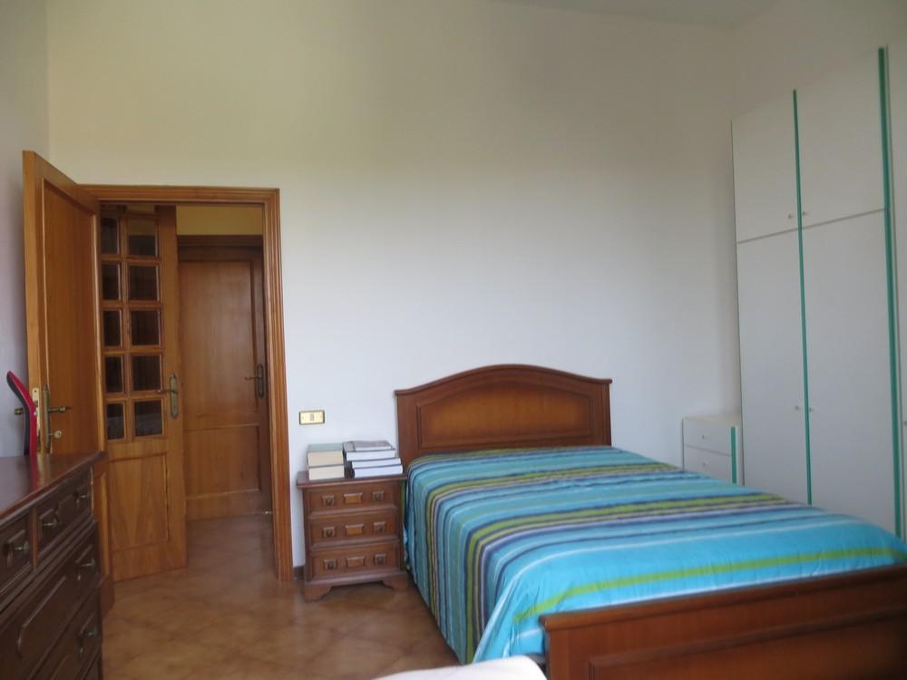 Vendesi in villetta bifamiliare appartamento al piano primo di mq. 100 circa composto di: ingresso, ampio soggiorno/pranzo con termo camino e zona cottura, due camere matrimoniali, bagno e terrazzo. Il tutto corredato di giardino privato con gazebo, due locali uso magazzino, cantina, garage e posto auto coperto.APE ´´F´´ EPI 194,35kwh/mq.annuo. Buono stato.