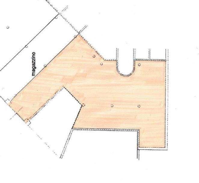 Locale ad uso magazzino di circa 266mq, altezza 2.7 mt. con pavimento industriale. Posti auto.