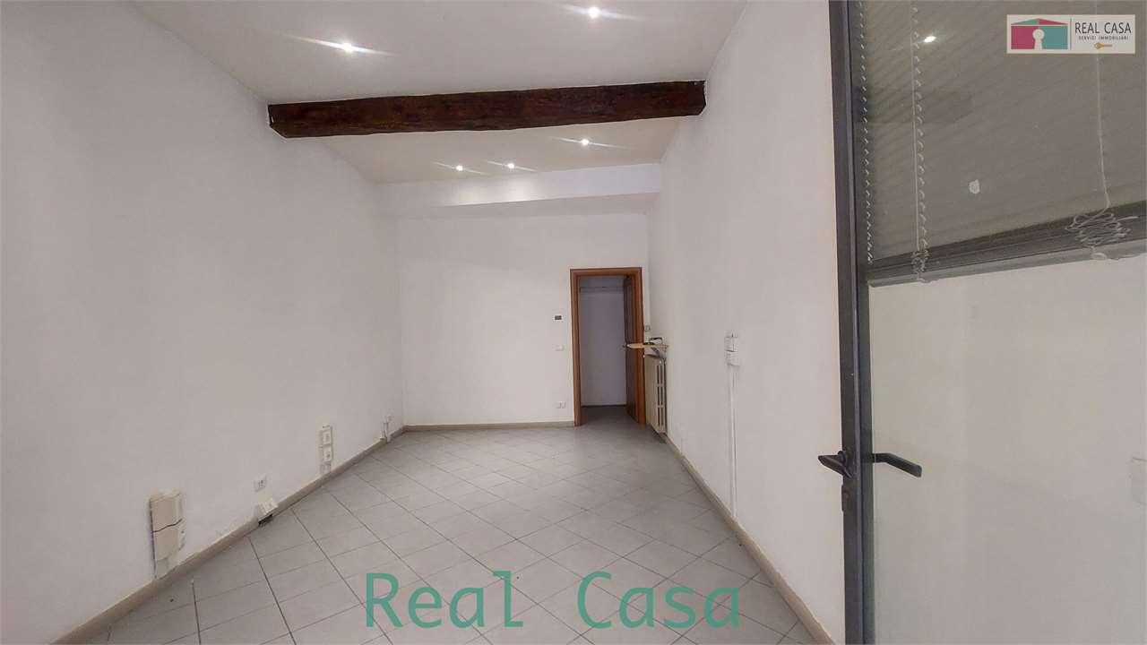 MODENA - ad.ze Chiesa di San Pietro, zona del centro storico facilmente raggiungibile poichè vicinissimo ai Viali, in strada tranquilla laterale di Via Saragozza, trattiamo la locazione di immobile in buone condizioni di circa 32 m2 commerciali con antibagno e bagno. Dotato di bella vetrina con vetri antisfondamento e serrande scorrevoli, si presenta ben cablato e con soffitti caratteristici con travi a vista; ambiente lavorativo openspace di circa 3,5 x 6,30 metri calpestabili. Accatastato come C1 quindi NEGOZIO ma particolarmente adatto ad UFFICIO Commerciale, STUDIO tecnico, piccolo LABORATORIO creativo o ´´attività bianche leggere´´. Richiesta EURO 500/mese (esente IVA) - NO spese di condominio
