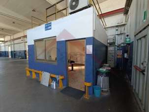 BM5318 Modena Est Affittato capannone semi-indipendente di circa 900 mq comm. con area perimetrale ad uso esclusino su 3 lati di ma 770. Internamente si presenta come un doppio laboratorio speculare diviso da parete interna ma con passaggi interni con ognuno un doppio portone carraio, altezza sotto rtrave di m. 6,5 con propri bagni e spogliatoi e 1 ufficio interno. Presenza di due carroponti da 5 ton. impianto elettrico certificato e di riscaldamento. Possibilita di affitto totale ad EURO 5.400,00 + iva mensili o singole porzioni ad EURO 2.700,00 + iva mensili inf. 059.7124859 cel 3332960334