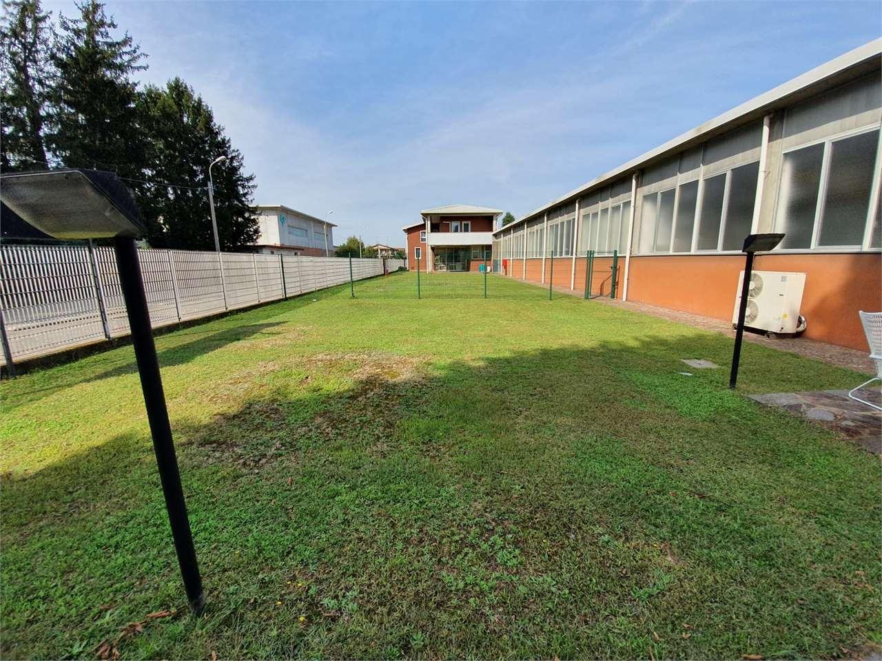 L´immobile, libero su 3 lati, è composto da un ingresso pedonale con giardino, un portone per accesso mezzi motorizzati, un luminoso open Space e un bagno. Il fabbricato è dotato di riscaldamento centralizzato (radiatori) e impianto di raffrescamento. Si accede alle aree carraie di pertinenza tramite quattro comode entrate con cancelli automatici. L´intera area è protetta da antifurto e sistema di vigilanza; è inoltre presente servizio di portineria con custode 365 giorni l´anno.