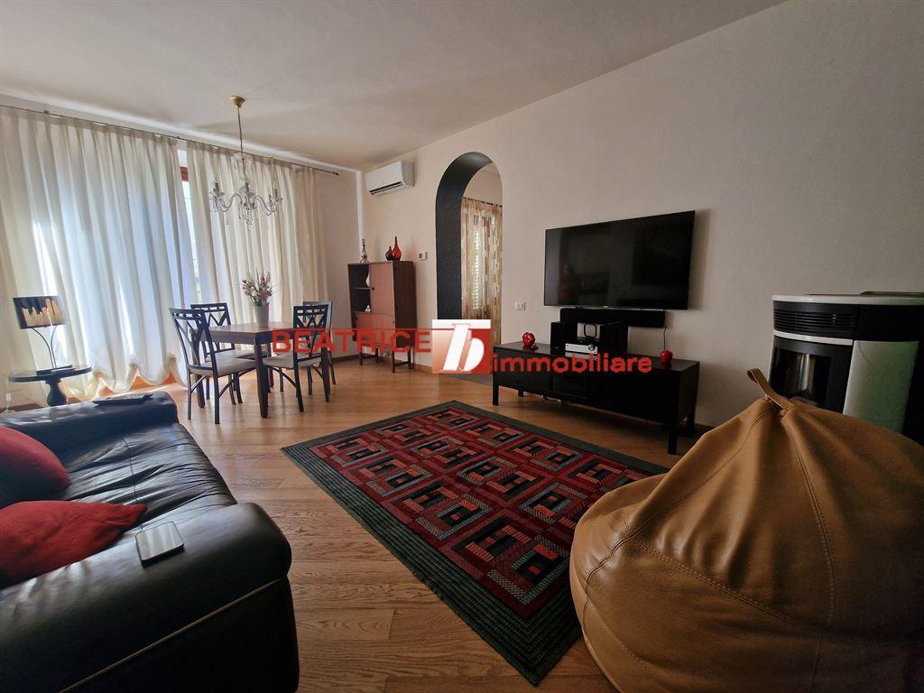 LUCCA COUNTRYSIDE - 4 KM. FAR FROM THE CENTRE - Placed in a quiet green area, good context, a bright apartment placed on the ground floor of a semi detached house. It is on two levels, with its private entrance, 270 sq.m. approx. and consists of a main living room, another sitting room usable as a guest bedroom, a kitchen, a bathroom, two double bedrooms one of which with an en suite bathroom, a study with a large window that it is connected with a windowed basement that has also a own entrance from outside, consisting of a living room, a kitchen, a bathroom, a spacious garage and a large cellar. It is completed with a private fenced garden of about 120 sq.m. and a further car park space in the shared courtyard. Energy class F, Ep. 214,76 kWh/sq.m. per year. The address in the ad is not real but indicative of the area. Asking price negotiable.