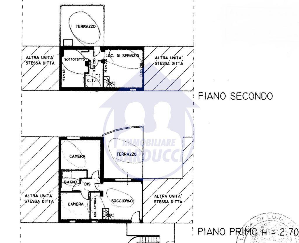 Da scala in legno accediamo al piano superiore mansardato, attualmente adibito a camera, terrazzo di 20 mq, bagno con doccia e vano ripostiglio.