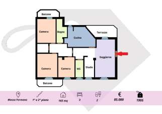 MASSA FERMANA Proponiamo in VENDITA AMPIO APPARTAMENTO di mq 165 sito al 1° piano di una casa singola Bifamiliare e completo di Mansarda pavimentata con terrazzo panoramico! Una propriet che si trova tra il mare e ai monti Sibillini, vicinissima al centro di Massa Fermana, grazioso Borgo Medievale. COMPOSIZIONE: Ingresso soggiorno cucina abitabile con camino 3 camere da letto di cui 2 camere matrimoniali e una singola 2 bagni 3 balconi ripostiglio Tramite la scala condominiale si pu accedere al 2° piano dove troviamo una mansarda pavimentata di mq 145 composta un un unico locale, un bagno e terrazzo panoramico STATO DELL´IMMOBILE. L´immobile si presenta in buone condizioni ed subito pronto per essere abitato. Infissi in legno con doppio vetro Riscaldamento autonomo Guaina impermeabilizzante nuova sul terrazzo della mansarda. PUNTI DI FORZA Ottimo rapporto qualit/prezzo! Contesto tranquillo e residenziale. Classe Energetica in fase di valutazione. Rif. 1995 L´indirizzo presente sulla mappa puramente indicativo della zona in cui si trova l´immobile. CONTATTACI PER VISIONARE LIMMOBILE allo o al oppure passaci a trovare nella nostra SEDE di MACERATA Via Prezzolini n. 7B-7C - SC