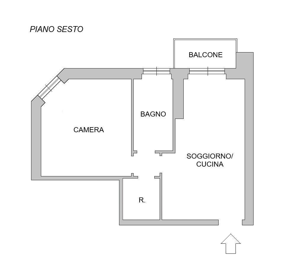 L´immobile è composto da ingresso, soggiorno con cucina a vista e accesso al balcone, disimpegno, camera e bagno con box doccia.