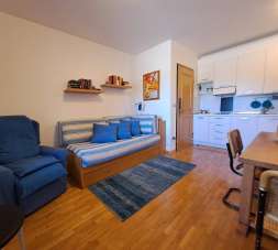 In caratteristico ed elegante edificio, vicinissimo a impianti di risalita e in zona servita, bilocale completo di ampia e panoramica terrazza con affaccio sulla bellissima piana dell´angelo e le piste da sci. Posto al primo piano del fabbricato l´appartamento, che viene venduto completo dell´arredo, composto da soggiorno con angolo cottura e terrazza, disimpegno, camera matrimoniale e bagno. Al piano interrato il ripostiglio con cantina al piano sottostante e autorimessa in propriet esclusiva. - SC