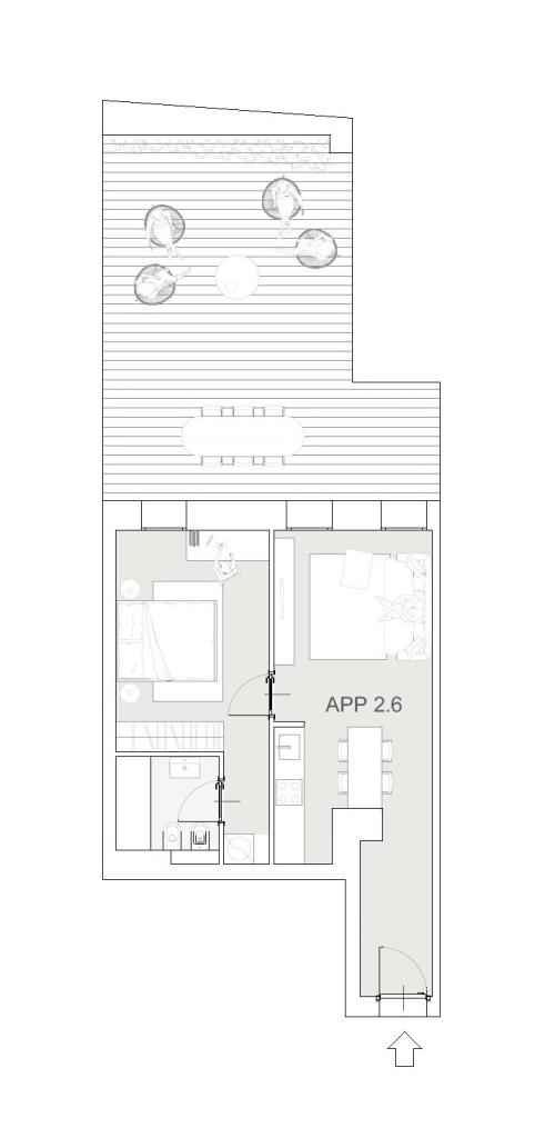 L´appartamento 2.6 è una soluzione di ca. 78 mq posto al secondo piano di tre della residenza EDOLO 19 ed è composto da ingresso su zona living con cucina a vista, disimpegno che divide la zona notte composta da una camera matrimoniale e bagno. Sia la zona giorno che la zona notte hanno accesso all´ampia terrazza di ca. 42 mq. Possibilità di acquisto posto auto coperto all´interno dello stabile ad € 35.000,00.