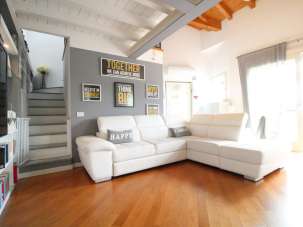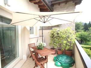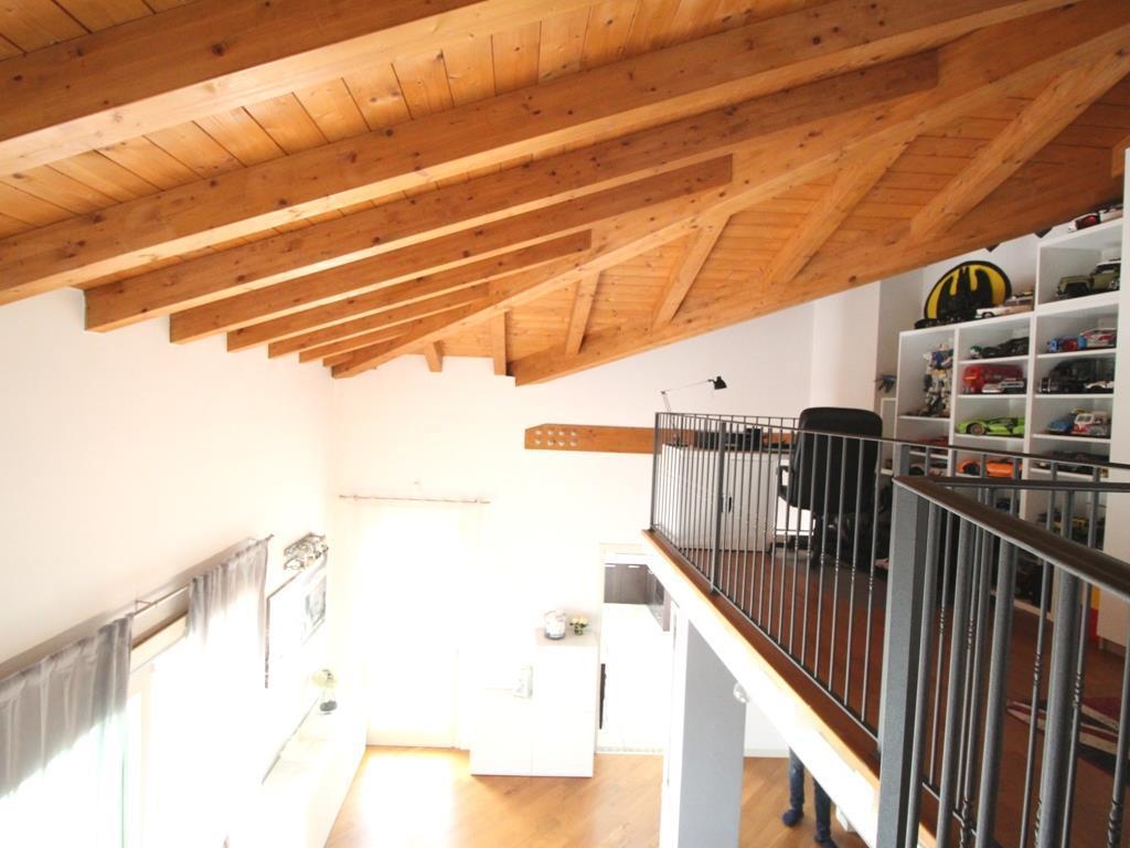 VENDUTO. ELEGANZA E MODERNITA’!! In villa caratterizzata da inserti in pietra Credaro e tetto in legno lamellare, posta nel pieno centro del paese ma appartata e riservata, proponiamo appartamento al primo ed ultimo piano, SERVITO DA ASCENSORE, di TRE LOCALI con doppi servizi e FAVOLOSO SOPPALCO con affaccio sul soggiorno. La soluzione ha una superficie di 110 mq. ed è privilegiata da un ampio e luminoso soggiorno con doppia altezza e caratteristico soppalco in legno sovrastante; da questo ambiente si accede al comodo terrazzino ideale per pranzare o cenare all´aperto. La cucina resta separata ed abitabile con accesso ad un secondo terrazzino anch´esso con profondità tale per allestire un tavolo. Un disimpegno ci conduce alla zona notte, dove troviamo due confortevoli e spaziose camere da letto ed il bagno con la vasca e la doccia. Integra il piano un bagno di servizio adiacente all´ingresso dell´appartamento. Una scala in muratura dal soggiorno ci porta al soppalco di mq. 15 utilizzato come studio. La casa è perfetta ed è tenuta con massima cura, è rifinita con un prestigioso parquet posato a correre in tutti gli ambienti ad eccezione della cucina e dei servizi dove troviamo un grès. Inoltre l’immobile è dotato di rifiniture ricercate e all’avanguardia, tapparelle avvolgibili elettriche, porte bianche in legno e serramenti di ultima generazione. L’impianto termico è alimentato da una caldaia a condensazione autonoma e pannelli radianti a pavimento. Completano la proprietà una praticissima cantina mentre il box singolo è da quantificare OBBLIGATORIAMENTE a parte in Euro 15.000,00. SEMPLICEMENTE IMPECCABILE!! CONTATTATECI PER LA VISIONE! INDICE DI PRESTAZIONE ENERGETICA NON RINNOVABILE 112,83 kWh/m2a. CLASSE ENERGETICA C, INDICE DI PRESTAZIONE ENERGETICA RINNOVABILE 1,97 kWh/m2a.