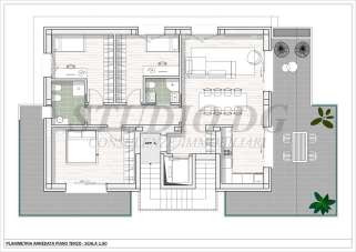 panoramico attico sito al piano terzo ed ultimo libero su quattro lati composto da ampio soggiorno con cucina semi abitabile, tre camere e due bagni. Dotato di due terrazzi per un totale di mq.60,46 e cantina. L´ accesso esclusivo all´attico con l´ascensore privato garantisce il massimo della privacy, del confort e dell´ eleganza.