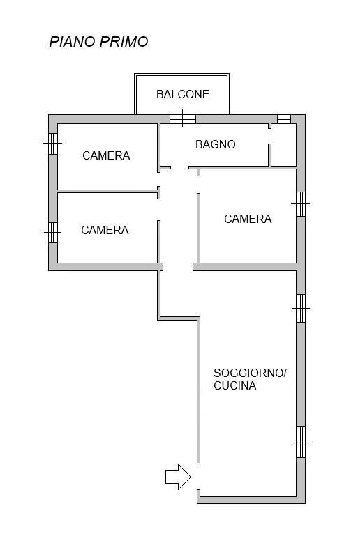 L´immobile è composto da ingresso, ampio soggiorno doppio con cucina a vista, tre camere, ampio bagno finestrato, ripostiglio finestrato e balcone. L´appartamento internamente è da ristrutturare, compresi l´impianto elettrico, idrico e di riscaldamento.