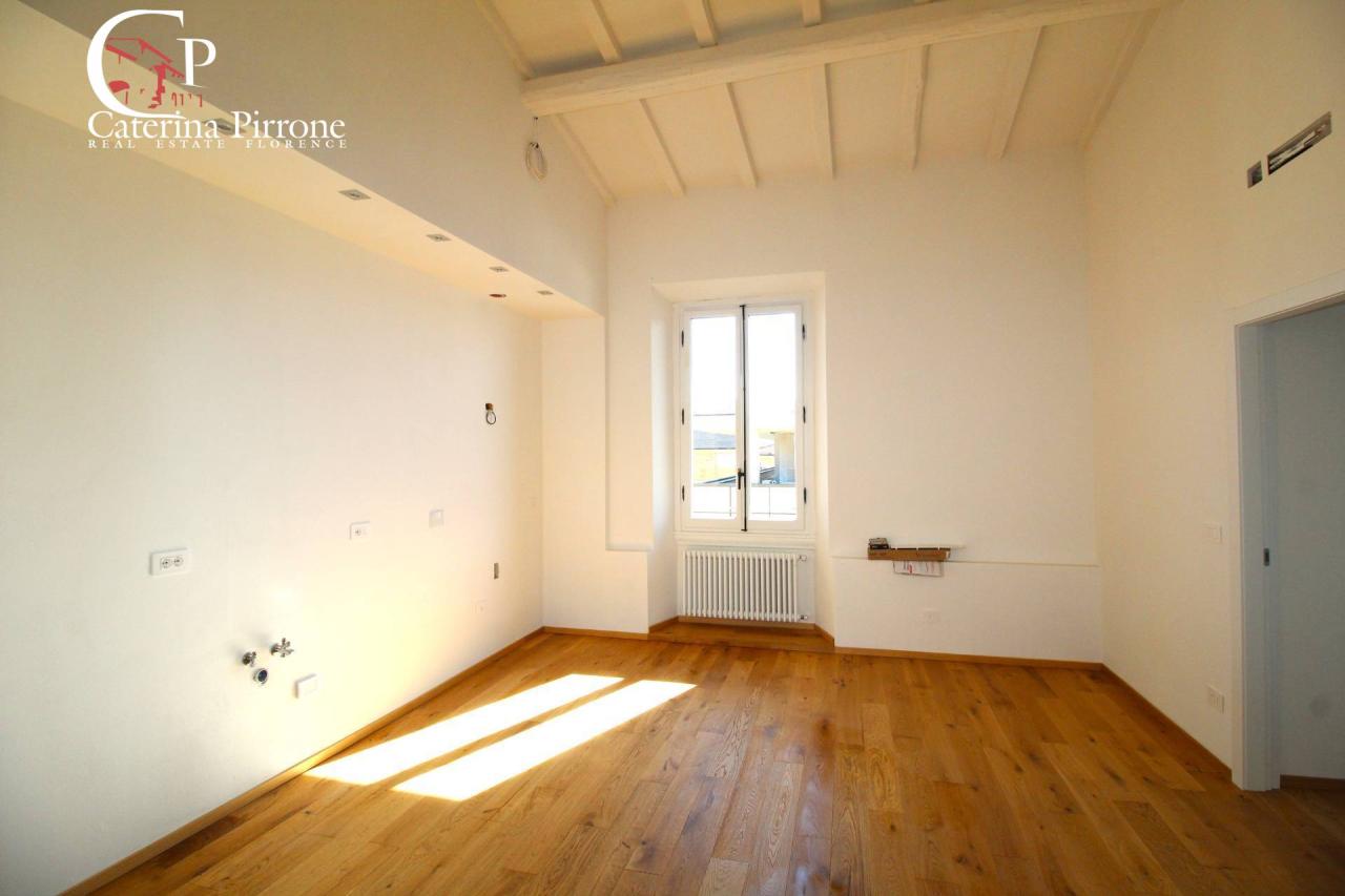 Firenze Campo di Marte, in una traversa silenziosa del viale dei Mille, vendesi appartamento ristrutturato, 4 vani, posto in elegante palazzina depoca primi 1900 con tetto e facciate recentemente rifatti, basse spese condominiali. Limmobile al terzo ed ultimo piano, luminoso, panoramico sulla citt e sulle colline, con la possibilit di realizzare l´ascensore. Particolare attenzione stata dedicata alla scelta dei materiali di qualit e pregio, travi a vista, parquet in rovere. Gli spazi sono stati pensati e realizzati con grande cura e distribuiti in modo razionale e funzionale per sfruttare al meglio la superficie totale. Lappartamento composto da ampio e luminoso soggiorno con cucina a vista e accesso allampio balcone panoramico, disimpegno zona notte con due camere da letto, studio o cabina armadio, due bagni di cui uno finestrato. Tutti gli impianti sono di nuova realizzazione e saranno consegnati con le relative certificazioni di conformit. Il riscaldamento autonomo con caldaia a condensazione, predisposizione aria condizionata. Vende societ. Euro 425.000 + iva. AG125 - SC9491417