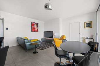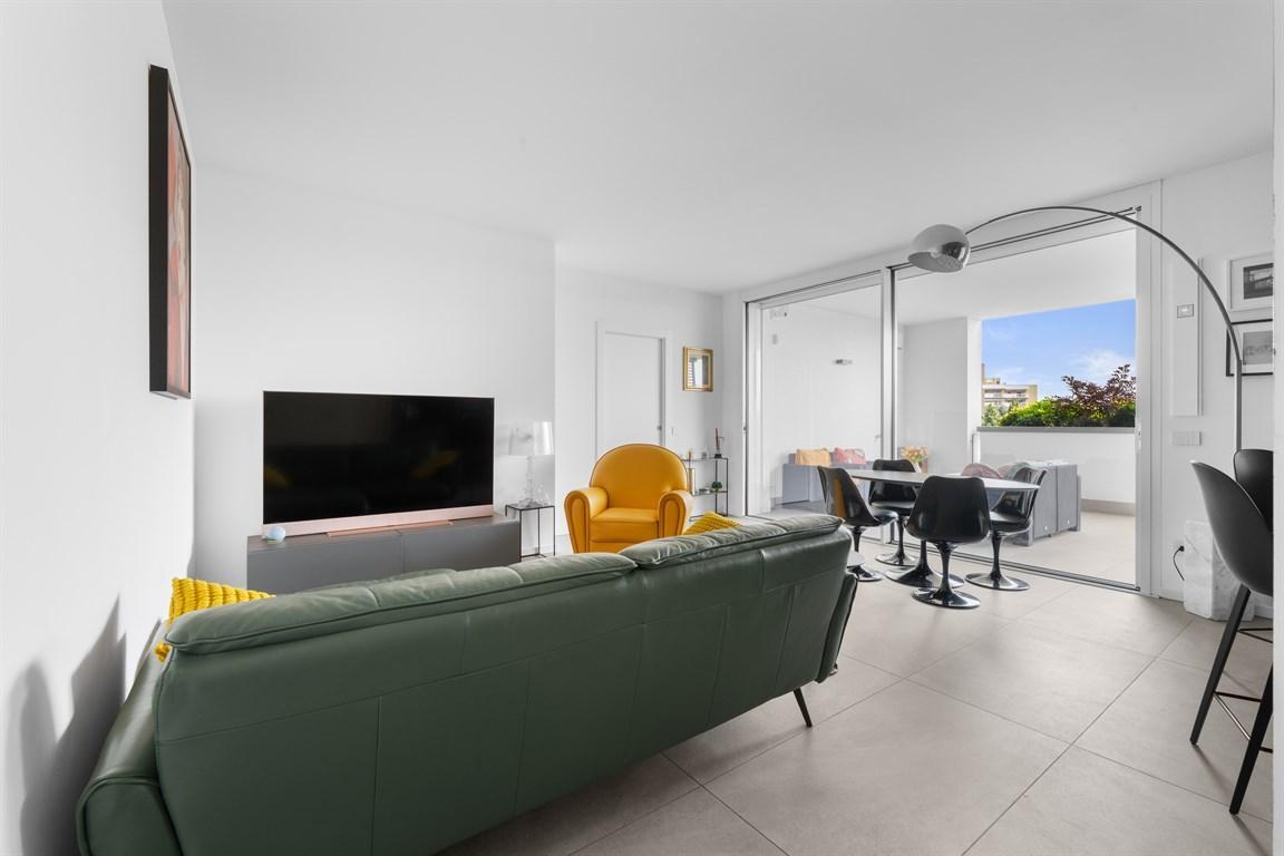 L´appartamento è composto da ingresso su ampio soggiorno con cucina a vista e accesso alla terrazza coperta (loggia), disimpegno che divide la zona notte composta da due camere da letto, doppi servizi e terrazza coperta (loggia) accessibile da entrambe le camere. Completa la proprietà una cantina di pertinenza e un box di ca. 18 mq all´interno dello stabile la cui richiesta è pari ad € 30.000,00.