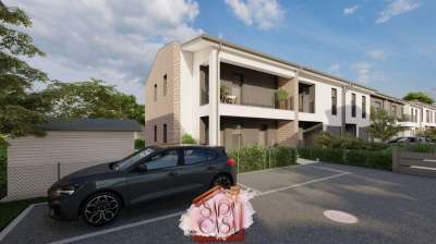 All’interno di un nuovo complesso immobiliare composto da 12 unità tra villette e appartamenti, costruite con tecniche edilizie innovative e ad alta efficienza energetica, proponiamo appartamento al primo piano con spazi funzionali e ottima esposizione. L’abitazione è composta da soggiorno con angolo cottura, disimpegno armadiabile, due camere da letto (matrimoniale e singola) entrambe con accesso diretto al terrazzo e bagno finestrato. Completano la proprietà un garage e due posti auto scoperti esclusivi. L’immobile è dotato di impianto videocitofonico, predisposizione per sistema d’allarme, riscaldamento a pavimento e impianto fotovoltaico autonomo. Le finiture sono completamente personalizzabili in base alle esigenze dell’acquirente.