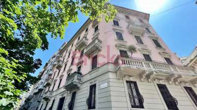 VIA SARDEGNA - Palazzo d´epoca in perfetto stato di conservazione con eleganti parti comuni e servizio di portineria al mattino. Proponiamo in locazione un luminoso appartamento trilocale al secondo piano recentemente ristrutturato di circa 135 mq. L´ingresso conduce al grande soggiorno ed alla cucina abitabile completamente attrezzata e balcone. Dal corridoio si accede alla zona notte composta da una camera da letto matrimoniale con balcone, un primo bagno, una seconda camera da letto e ad un secondo bagno finestrato. I pavimenti sono in parquet e i bagni rifiniti con piastrelle in gres porcellanato. Dotato di riscaldamento centralizzato, caldaia a gas per l’acqua calda sanitaria e predisposizione per l´impianto di aria condizionata.