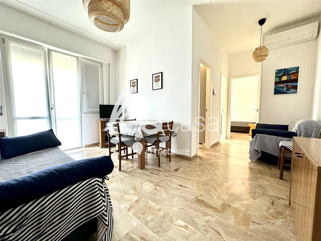 Ampio e luminoso bilocale posto al primo piano alto con ascensore ( circa 7 gradini) composto da ingresso su soggiorno con divano letto matrimoniale, cucinotto finestrato con forno, piastra ad induzione e macchinetta per il caffè, bagno finestrato con doccia e ampia camera da letto. due balconate con esposizione sud est. Dotato di aria condizionata in pompa di calore. Capienza massima 5 persone.