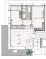 appartamento sito al piano primo composto da soggiorno con cucina a vista, due camere e bagno. Dotato di terrazzo mq.18,50 e cantina.