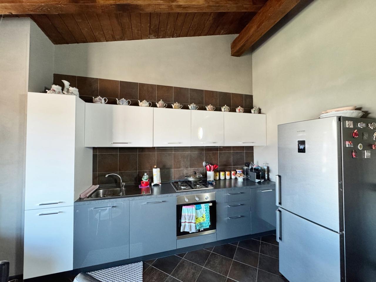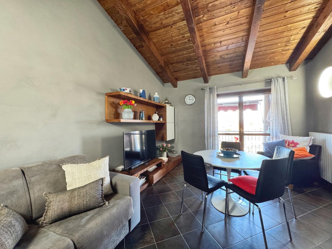 Poirino. Corso Fiume. In zona centrale comoda a tutti i servizi e ai principali negozi, proponiamo appartamento al quarto ed ultimo piano con ascensore, di circa 80 mq. La zona ben servita, ideale per chi desidera vivere in un luogo comodo e ben collegato con i principali mezzi di trasporto pubblici. Limmobile stato ricostruito totalmente nel 2009, si presenta in ottime condizioni e gode di unottima luminosit. Il piacevole soffitto in legno con travi a vista dona a questo immobile un effetto elegante e caldo. Internamente lappartamento si presenta composto da un ingresso, il soggiorno con cucina a vista che offre uno spazio comodo e funzionale, ideale per trascorrere piacevoli momenti in compagnia. Le due camere da letto in parquet sono spaziose e luminose, perfette per ospitare la tua famiglia o per creare uno studio personale. I balconi offrono la possibilit di godere di una vista panoramica sulla citt e di trascorrere momenti di relax all´aria aperta. Il riscaldamento autonomo a metano garantisce comfort e risparmio energetico. Se sei alla ricerca di un appartamento confortevole e ben curato, non perdere l´occasione di visitare questo immobile a Poirino. Contattaci per maggiori informazioni e per prenotare una visita. - SC