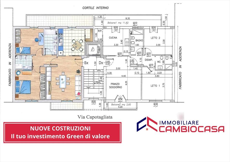 NUOVE COSTRUZIONI VIA CAPOTAGLIATA- ZONA BORGO- TARANTO UN´INVESTIMENTO GREEN DI VALORE prezzo euro 155.000 (LA TIPOLOGIA DELLA COSTRUZIONE CONSENTE L´ACCESSO AI COSIDETTI ´´MUTUI GREEN´´CON TASSO AGEVOLATO) Un nuovissimo complesso abitativo moderno e di design, progettato per garantire un´ elevato comfort abitativo. Siamo Via Capotagliata e da un importante recupero edilizio nasce questo nuovo complesso green progettato con un grande impatto visivo che trasmette un forte senso di esclusività. Le soluzioni abitative di 88,60mq (più balconi di 15,22mq) composte da 3vani più accessori sono state progettate con una corretta distribuzione degli spazi interni tali da renderle confortevoli alle esigenze dell´utilizzo contemporaneo. Tra i plus abitativi troviamo: -Predisposizione dell´impianto di condizionamento -Riscaldamento autonomo -Infissi in pvc a taglio termico -Porte interne di extra capitolato -Porta blindata - Caldaia a condensazione con termostato digitale -Videocitofono -Predisposizione dell´impianto d´allarme volumetrico -Pavimentazione in Gres porcellanato - POSTI AUTO E BOX AUTO: per garantire ulteriore comodità e sicurezza Ideato e costruito nel rispetto delle nuove esigenze di efficientamento energetico CLASSE A+. La cura dell´isolamento termico e acustico, l´installazione dei pannelli fotovoltaici, le certificazioni antisismiche rendono l´edificio un´esempio di tecnologia green e un investimento certo e di esclusivo valore. LA TIPOLOGIA DELLA COSTRUZIONE CONSENTE L´ACCESSO AI COSIDETTI ´´MUTUI GREEN´´CON TASSO AGEVOLATO. Che aspetti? Contattaci per fissare una visita! > 0995932272 > 3735475170 > 3207860081 Siamo in Via Plateja, 69/D - Taranto - SC9420136