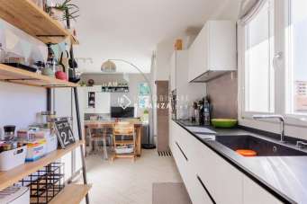 La zona giorno si apre in un luminoso open space con cucina a vista e ampie finestre esposte a sud, che garantiscono luce naturale durante tutto l’arco della giornata. Tutti gli ambienti della casa si affacciano su un ampio terrazzo di circa 25 mq, accessibile da ogni stanza: uno spazio perfetto per pranzi all’aperto, momenti di relax o per godersi un po’ di verde in totale privacy.