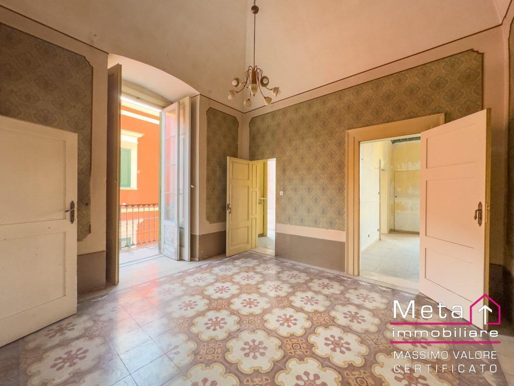 All’interno, ogni ambiente è impreziosito da volte alte circa 4,20 metri, che donano ampiezza, eleganza e una luminosità straordinaria. Ci sono 3 grandi stanze collegate fra loro e facilmente personalizzabili, oltre al bagno e 5 balconi. La vista panoramica dalle finestre contribuisce a rendere l’atmosfera ancora più suggestiva. La casa è composta da ambienti ben distribuiti, con pavimenti decorati, porte originali con dettagli che raccontano la storia dell’edificio.
