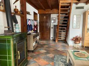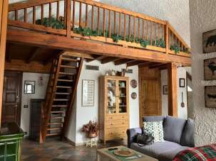 Nella pittoresca borgata di Bousson proponiamo attico panoramico con ottima esposizione a sud. L´alloggio si trova nella grangia più alta del paese in corrispondenza della vecchia strada per Cesana ed è così composto: doppio soggiorno, camera da letto, ripostiglio con soppalco, cucinino, bagno e balcone. L´ampio soggiorno attraverso l´ariosa finestra caratteristica degli antichi fienili gode di una splendida vista che spazia da Cima del Bosco ai Monti della Luna fino allo Chaberton. Fanno sempre parte del soggiorno la zona pranzo antistante il cucinino e la zona TV con la vecchia stufa a legna. Grazie ad un comodo separé è stata ricavata una seconda saletta relax con divano letto e seconda TV.
