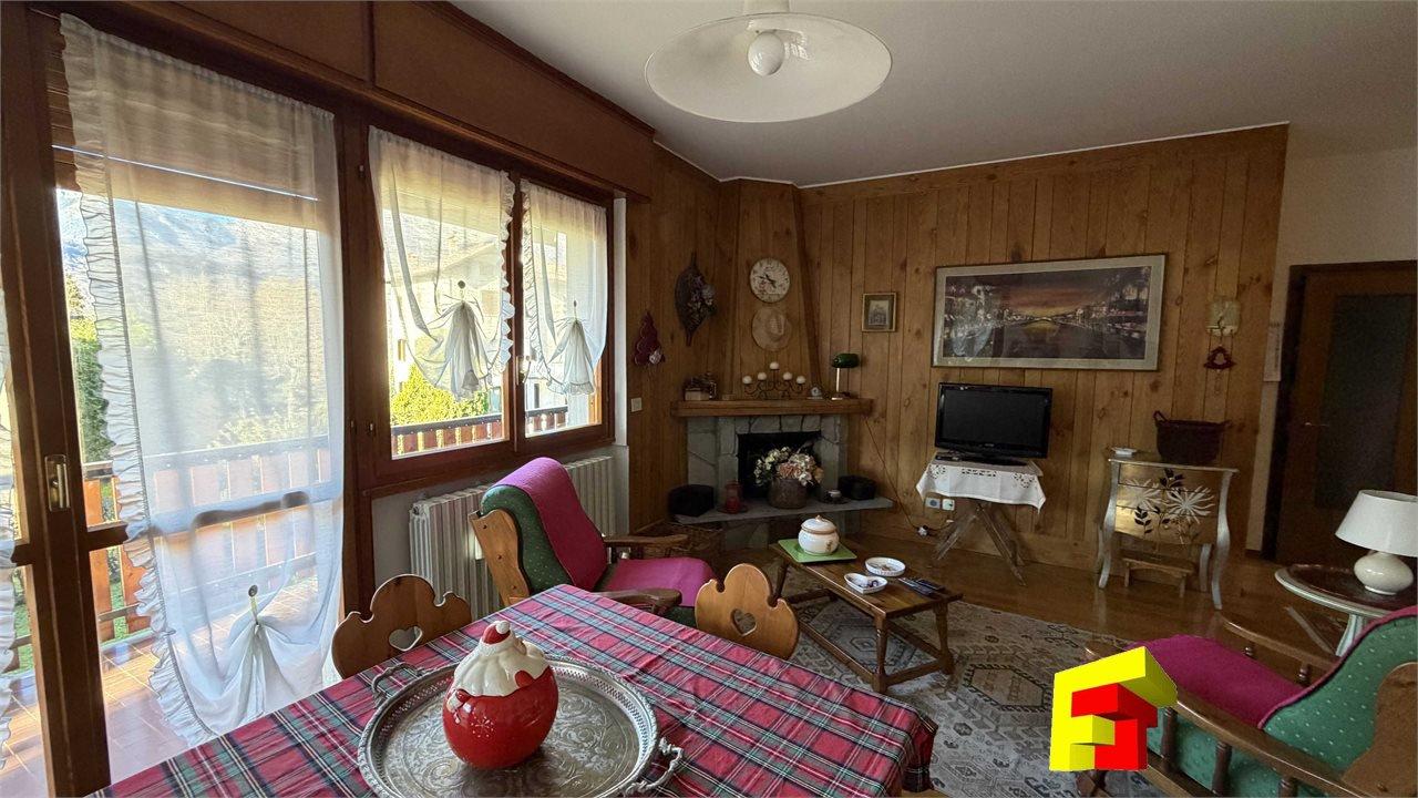 Barzio, ampio trilocale con vista Grigna, caminetto a legna e box al piano interrato.\nCostruito nel 1972, l´immobile si trova in ottime condizioni ed è dotato di un accogliente camino per le serate invernali.\nCon una superficie di 100 mq, l´appartamento dispone di 3 locali, soggiorno luminosissimo esposto a ovest con ampio balcone di circa 20 mq e caminetto a legna, cucina finestrata semi abitabile, camera matrimoniale, camera doppia e ampio bagno anch´esso finestrato.\nAl piano seminterrato sono presenti il box e la cantina che completano la proprietà, per un totale di quasi 130 mq commerciali.\nCondominio dotato di ascensore con partenza dal piano box e cantina e grande giardino comune.\nIl tutto situato a pochi passi dal centro del paese e sulla camminata alta che unisce Barzio a Cremeno. - Maggiori Dettagli: Camino