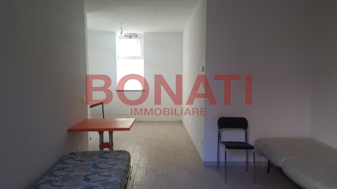 ingresso in ampio soggiorno con angolo cottura, camera matrimoniale e bagno.