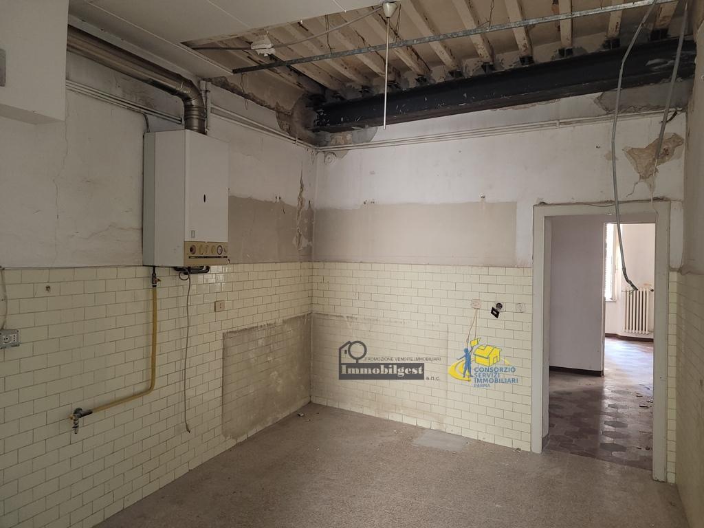 BORGO PARMIGIANINO in casa trifamiliare appartamento al primo piano mq 143, termoautonomo e composto da: ingresso, soggiorno, cucina, tre camere, bagno (possibilità secondo bagno visto la metratura) cantina. Da ristrutturare completamente e possibilità frazionamento. Euro: 170.000,000 Tel.