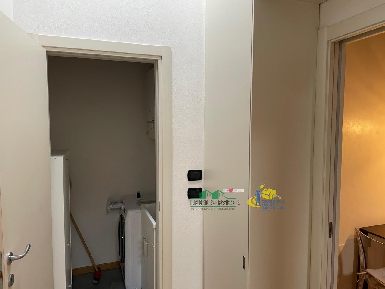 L´abitazione, si trova al 3° ed ultimo piano, si sviluppa in complessivi 65 mq con riscaldamento autonomo, climatizzazione e viene locata completamente e finemente arredata. Internamente troviamo una zona ingresso con ampia zona soggiorno con accesso al balcone, angolo cottura in nicchia, disimpegno arredato con armadiatura, zona notte con ampia camera matrimoniale dotata di cabina armadio, servizio con doccia e vasca da bagno e ripostiglio ad uso lavanderia con lavatrice, lavabo, caldaia, scarpiera. Cantina al piano terra e garage con bascula automatizzata al piano interato. Modeste spese condominiali. Canone mensile € 950,00.