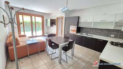Proponiamo in vendita appartamento al piano terra di un fabbricato condominiale di recente costruzione (2006).\nL´immobile è composto da soggiorno con angolo cottura, due camere da letto, disimpegno e bagno.\nComprensivo di arredamento.\nAll´esterno, gli spazi si arricchiscono di un porticato coperto e di un giardino esclusivo.\nCompletano la proprietà cantina e box auto con serranda elettrica.\n and #128073; Soluzione ideale per chi cerca comodità, spazi esterni privati e posizione strategica nel cuore di Breno.\n - Maggiori Dettagli: Porta blindata