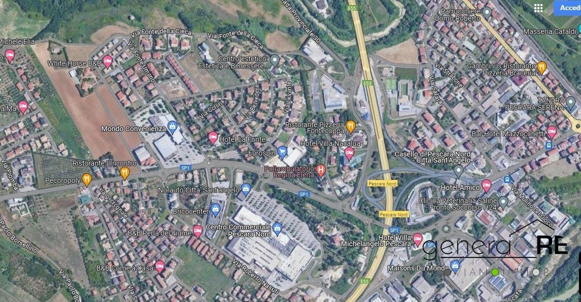 LA GENERA RE and CHIODELLI IMMOBILIARE\nPROPONGONO IN VENDITA a Città Sant´Angelo in zona Fonte Umana terreno edificabile per la realizzazione di una bifamiliare o di 5-6 appartamenti.\nL´estensione del terreno è di mq 800 con la possibilità di realizzare una superficie edificabile per mq 400 oltre le parti sottotetto e quelle interrate destinate a garage e cantine.\nIl terreno ricade in una zona densamente edificata con ville ed appartamenti, vicino all´uscita autostradale, il centro commerciale Pescara Nord e tutti i servizi di primaria necessità.\n