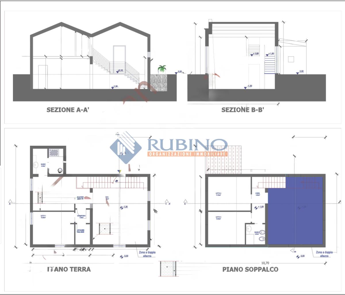 Piano interrato (circa 65 mq): ampio soggiorno/pranzo con cucina a vista, disimpegno, camera da letto, bagno completo e ripostiglio;