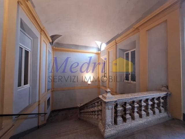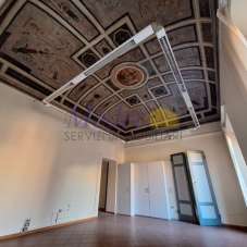 CENTRO STORICO -.CORSO SOZZI - immobile posto al primo piano e secondo/sottotetto, prevalentemente ad uso ufficio, in palazzo signorile misto direzionale e commeciale con corte interna. L´unità immobiliare si sviluppa al piano nobile del fabbricato dove sono presenti un salone (h 9 metri) , due ampie stanze (rispettivamente alte 4,91 e 5,16 metri) e il bagno. Tutti gli ambienti sono attualmente partizionati internamente con pareti modulari in box uffici, rimovibili. Sia le pareti che il soffitto di tali aree dell´unità sono interamente affrescate e si affacciano su Via Sozzi e su corte interna. Nella parte sottotetto sono presenti due bagni ed un antibagno, due ripostigli e due vani con lucernai e finestre. Completa la proprietà quota di 1/8 di un´autorimessa comune, oltre alla possibilità di parcheggiare un auto nella corte interna. Presente impianto di aria condizionata e impianto d´allarme. Possibilità di cambio di destinazione d´uso in civile abitazione. La struttura dell´edificio, che è appartatenuto a note famiglie nobili cesenati, risale orientativamente al XVIII secolo. Il complesso è stato internamente ristrutturato negli anni 90 e presenta finiture in buono stato di conservazione.