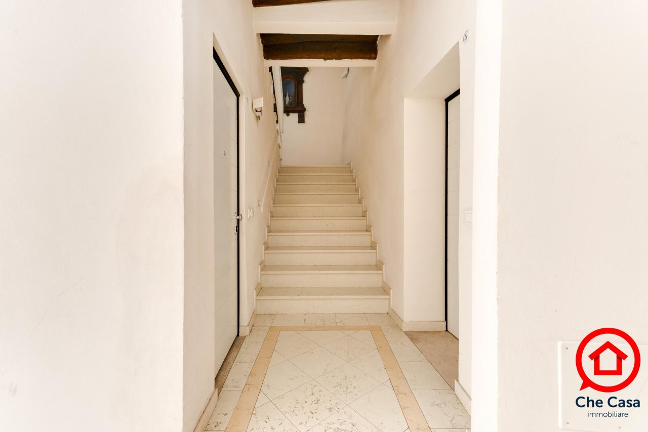 L’unità in vendita è un monolocale al piano primo, direttamente affacciato sulla suggestiva corte interna della palazzina e con vista sulla mura storica del centro.