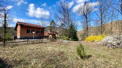 casa indipendente con giardino, terrazzo, porticato e garage. L´immobile è disposto su due piani: al piano terra, cucina, soggiorno, camera, bagno, porticato e garage; al primo piano, ingresso, 2 camere, bagno e grande terrazzo, parzialmente verandato. Giardino di 500 mq e terreni per 3650mq