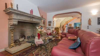 al suo interno troviamo 5 camere più saloni ed altre stanze, 5 bagni, 2 cucine in muratura. sono presenti 5 camini e un forno a legna. al piano interrato garage e scantinato dove è presente la lavanderia oltre a una piccola sala con camino con ingresso indipendente.