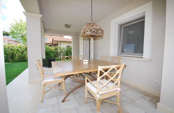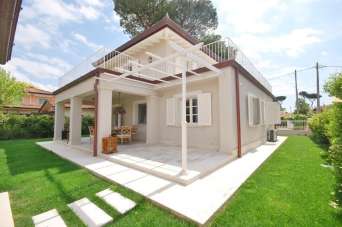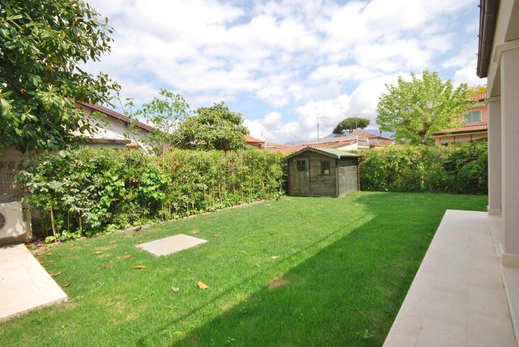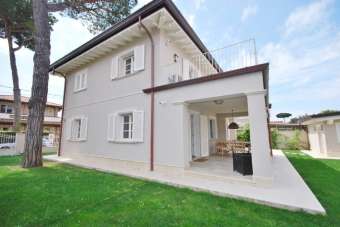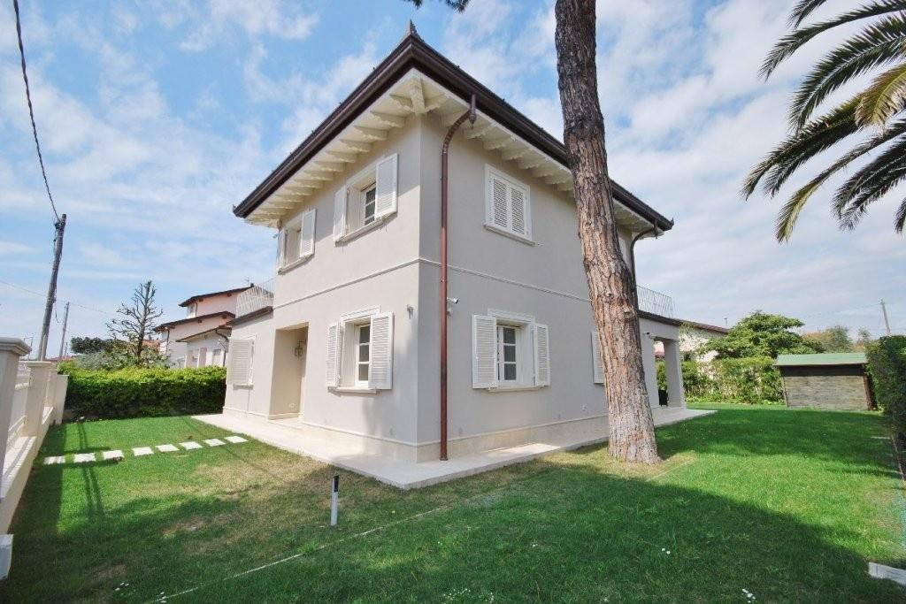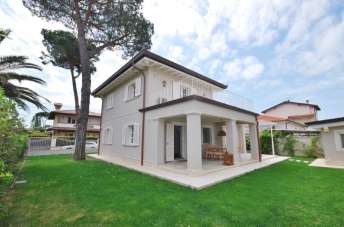 MARINA DI PIETRASANTA: Tonfano, 900 metri dal mare, villa unifamiliare di nuova costruzione composta da soggiorno, sala da pranzo, cucina, 2 camere e 1 bagno al piano terra; 2 camere e 2 bagni al primo piano; dipendenza con camera e bagno; giardino su 4 lati, posti auto.